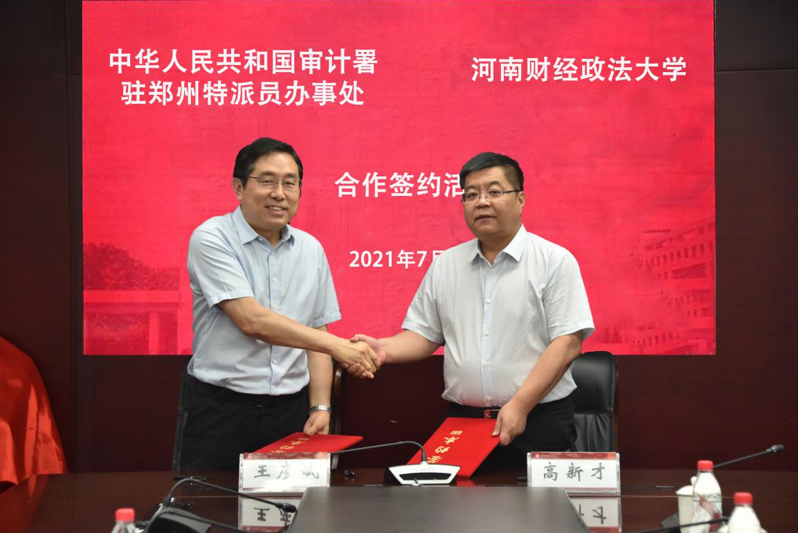7月7日,威廉官网中国与审计署驻郑州特派员办事处签约仪式在郑东校区行政楼举行。审计署驻郑州特派员办事处分党组书记、特派员王彦斌,威廉官网中国校长高新才、会计学院领导及有关职能部门负责同志出席仪式,副校长赵传海主持仪式。