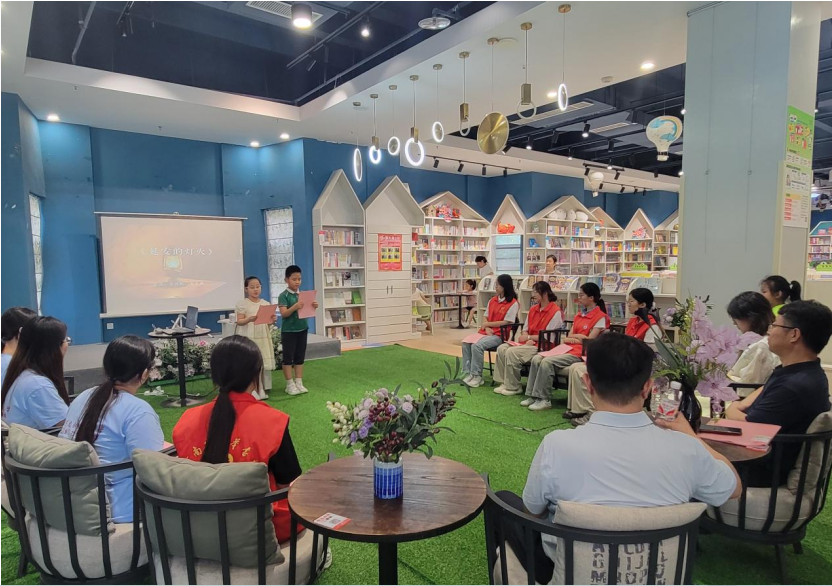 在阅读分享活动中,实践团成员儿童们围坐在一起。当讲述绘本里的奇妙冒险,他们亮晶晶的眼睛里满是专注;当探讨科普读物中的奇妙现象,小手高高举起,争着分享自己的“小发现”。在“志愿微光·点亮书香”主题读书分享会上,孩子们认真聆听、积极互动,用童稚的声音诉说对书中世界的理解,那是对知识纯粹的热爱。